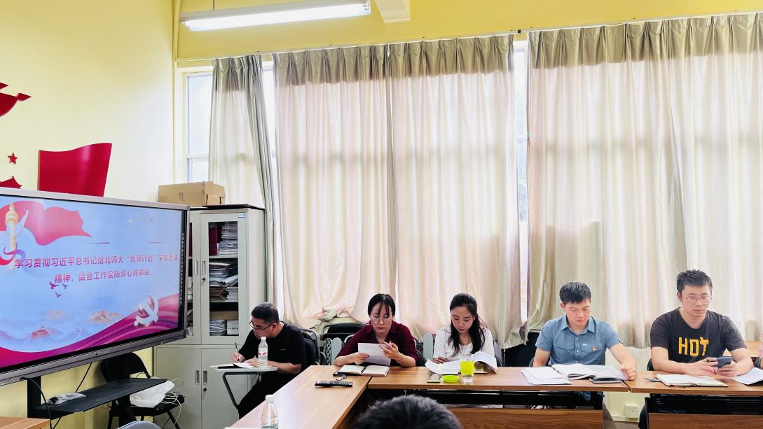 副院长陈锴就学习贯彻习近平总书记给北师大“优师计划”学生回信精神,结合工作实际谈心得体会。习近平总书记的重要回信,充分体现了以习近平同志为核心的党中央对广大教师、师范生和师范院校的亲切关怀和特殊厚爱,对教育系统是极大的鼓励和鞭策。学习贯彻落实好总书记教师节重要回信精神,对于夯实教师队伍建设的基础地位和推动教育高质量发展具有重大意义。最后是由第二教职工党支部书记李张燕进行学习《让群众过上好日子——习近平正定足迹》 《闽山闽水物华新——习近平福建足迹》《干在实处勇立潮头——习近平浙江足迹》《当好改革开放的排头兵——习近平上海足迹》四部系统记述习近平总书记地方工作经历图书,结合工作实际谈心得体会。
