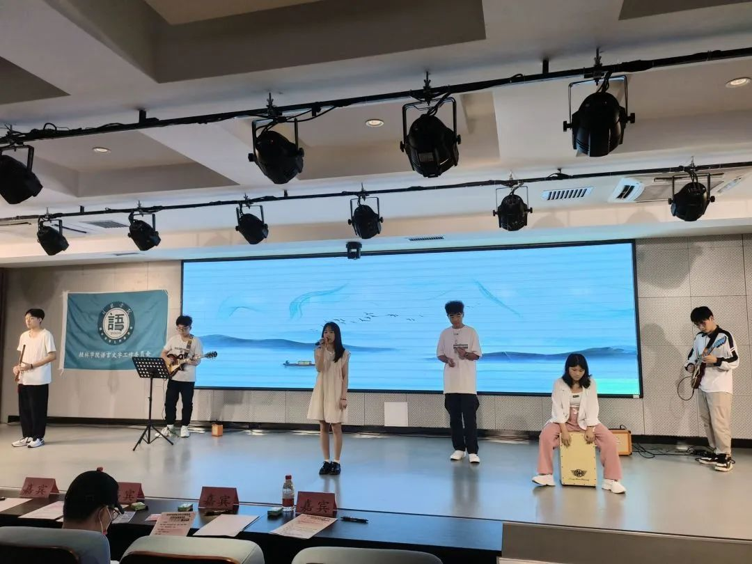 为贯彻落实党的二十大精神,传承弘扬中华优秀文化,展示我校第二届中华经典诵写讲系列大赛优秀作品,同时对优秀创作者进行表彰,桂林学院语言文字工作委员会于5月17日晚在至善讲堂开展中华经典诵写讲系列大赛优秀作品展演活动。桂林学院传媒与新闻学院副院长胡又嘉,校语委指导老师钟锟、邓克鹏、何一亿出席活动,校语委全体同学及演出人员参加了本次活动。
