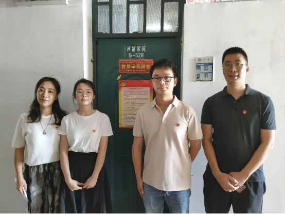 图:学院领导陪同学生党员完成“党员示范宿舍”挂牌