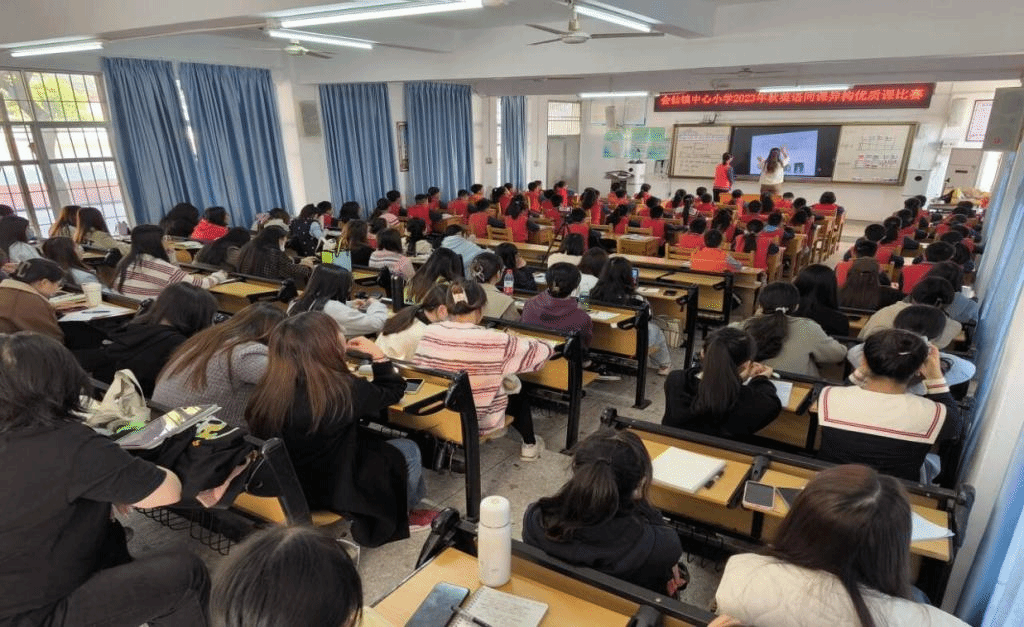 同课异构活动在会仙镇中心小学的阶梯教室举行。展示课由指导老师颜小艳与英语专业实习生张银珂执教。两位授课人员精心备课,巧妙设计,以扎实的课堂教学基本功,呈现出一节节各具特色的同课异构展示课。两位授课人员认真钻研教学设计,课堂精彩纷呈。