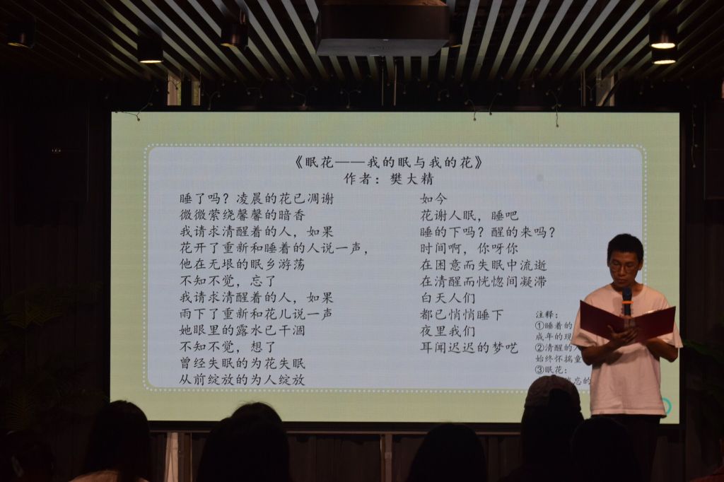 活动伊始,黄明海作致辞,表达了对诗歌艺术的敬仰,也鼓励了在场的每位参与者,激发了大家对创作的热情。