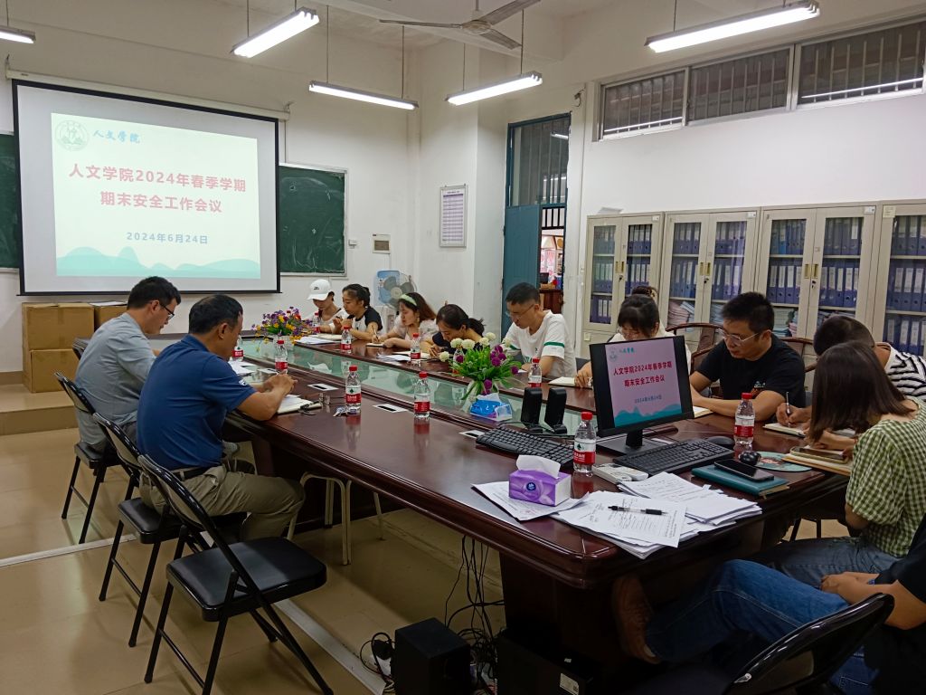 6月24日上午,人文学院在至善楼2108会议室召开2024年春季学期期末安全工作会议。学院全体领导班子成员、全体辅导员参加会议,会议由党总支书记、副院长庞一飞主持。