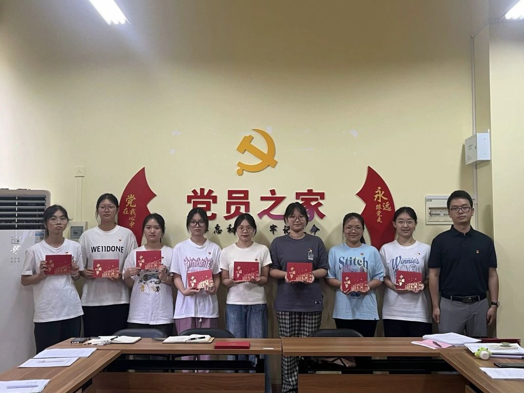 韦微为新发展党员发放《中国共产党章程》和《中国共产党纪律处分条例》,要求新党员们要加强学习,严格遵守党规党纪。