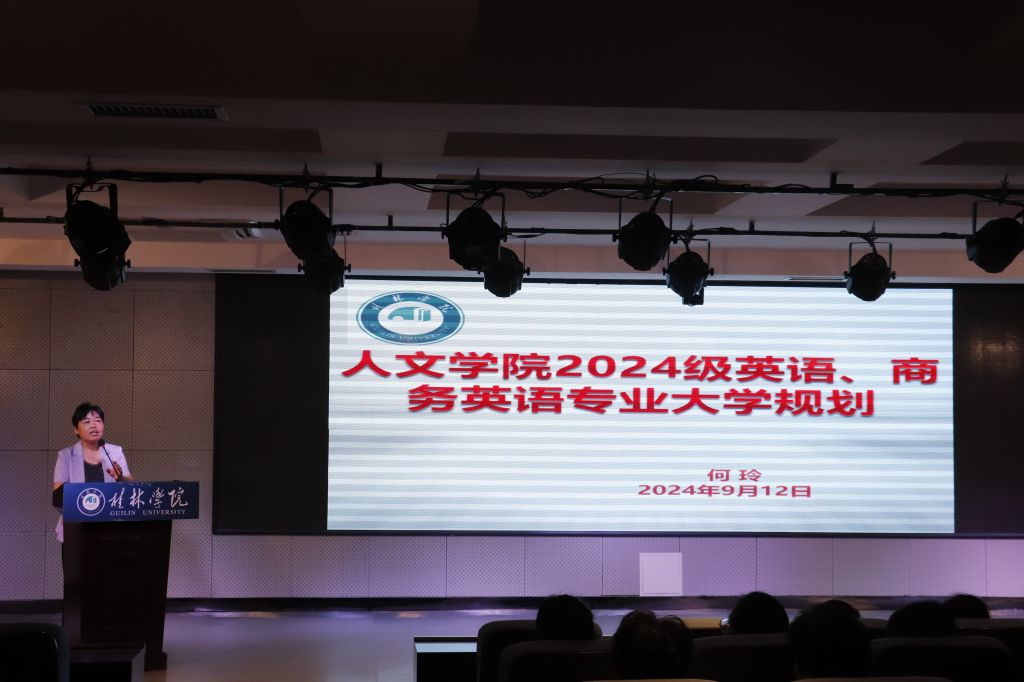 讲座紧密围绕英语和商务英语专业学生的大学规划展开。副校长首先全面介绍了我校的发展历程、办学特色及人文学院的独特优势,随后展示了英语和商务英语专业学生以往所取得的荣誉,以此激励新生们珍惜在桂林学院的学习机会,充分发挥自身潜力,为学校的发展贡献力量。