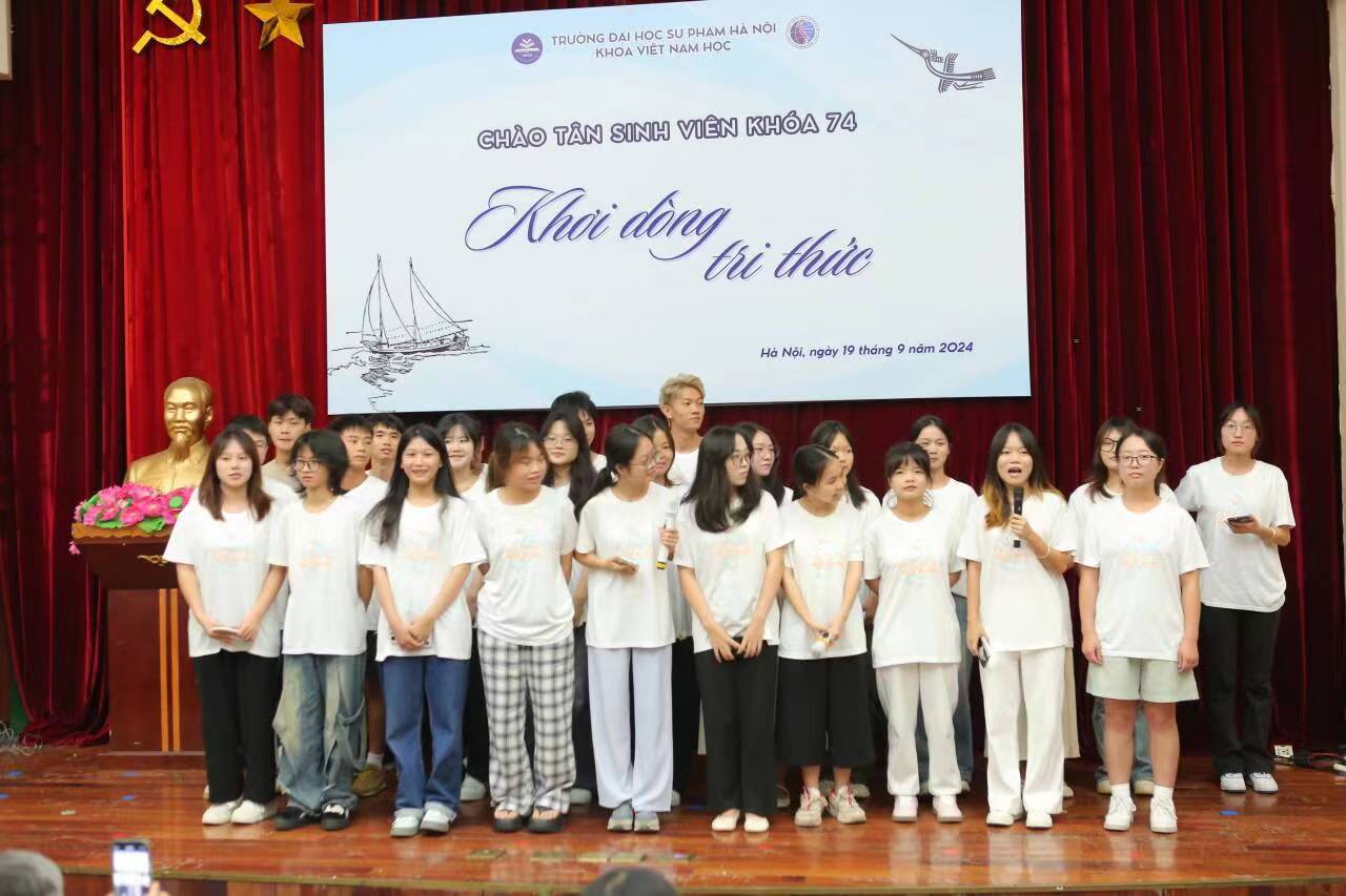 9月24日,越南河内师范大学越南学系在教学楼二楼讲堂为2024年入学新生举办了一场别开生面的迎新活动。河内师范大学越南学系主任黎辉北教授、越南学系的所有任课教师、越南学系大一新生以及我校2022级越南语专业26名学生参加了此次活动。