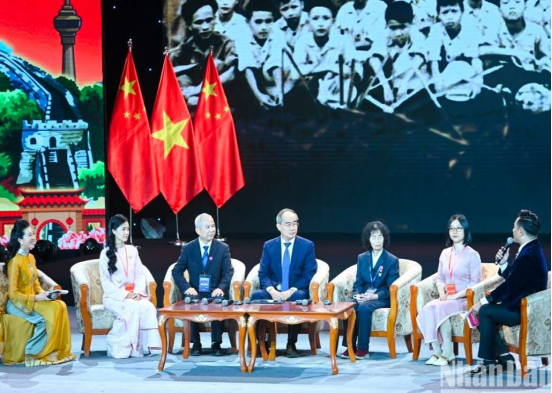 越南知名人士阮善仁、胡春山同志与越南和中国学生进行了亲切的见面交流讨论。他们互相深情回忆起自己在中国、越南留学时的点点滴滴,分享了那段难忘岁月的美好经历和成长感悟。他们还讲述了自己对中越两国关系过去的印象以及对未来的美好期望,表达了对中越友好关系持续发展的坚定信心,现场不时响起热烈的掌声。