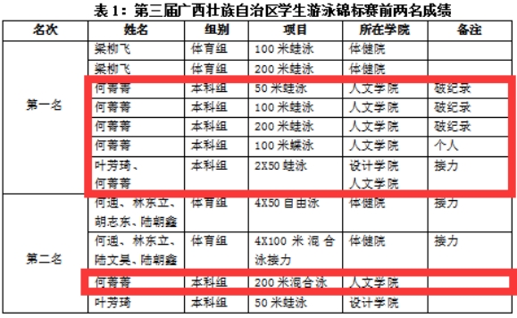 喜讯:2021级汉语国际教育专业学生在第三届广西学生游泳锦标赛中打破三项纪录