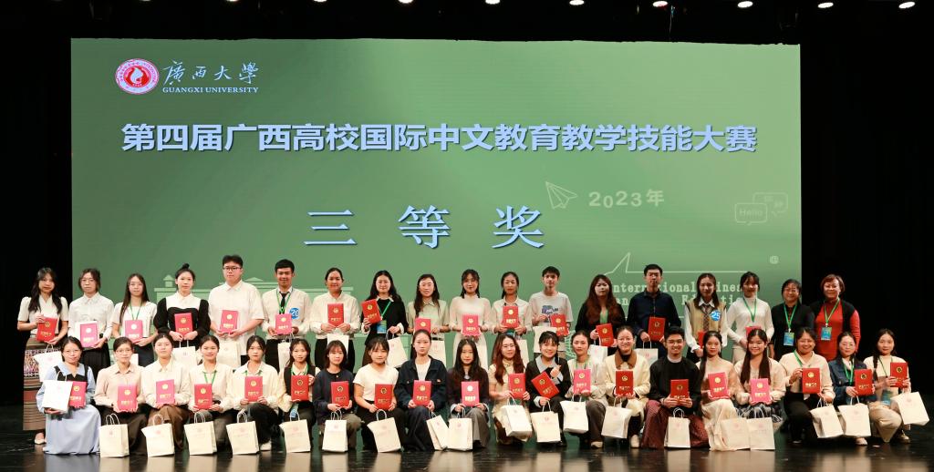 为加强全区高校汉语国际教育专业之间的交流与合作,提升国际中文教学质量,11月25-26日,由广西壮族自治区中国语言文学类教学指导委员会主办、广西大学承办的第四届广西高校国际中文教育教学技能大赛成功举办,我校人文学院汉语国际教育专业的三名学生喜获本科生组一等奖、三等奖、优秀奖各1项。