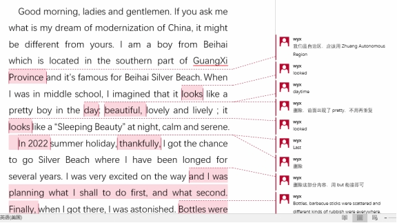 在比赛中,王晓燕同学以出色的演讲技巧和深入的思考,突显了她扎实的英语能力和对当代中国的独特理解,充分展示了她对中国发展现状的敏锐洞察力和扎实的专业知识。钱思宇作为商务英语专业学生,其演讲紧密结合自身专业背景,运用流利的英语表达了对中国未来发展的理解和对外合作重要性的思考。