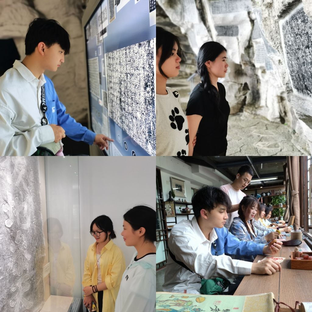 随后,青年师生来到桂海碑林,这片千年碑林见证了桂林悠久的历史和灿烂的文化。在导游的讲解下,大家领略了古代文人墨客的书法风采,感受到了中华文化的博大精深。同时,青年学子们还亲手体验了拓印技艺,通过实际操作,更加深入地了解了传统文化的魅力。