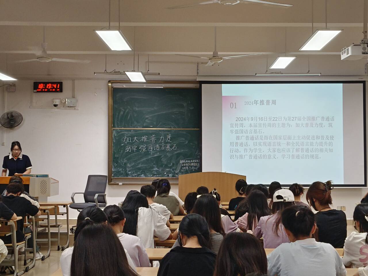 人文学院开展“加大推普力度,筑牢强国语言基石”主题班会