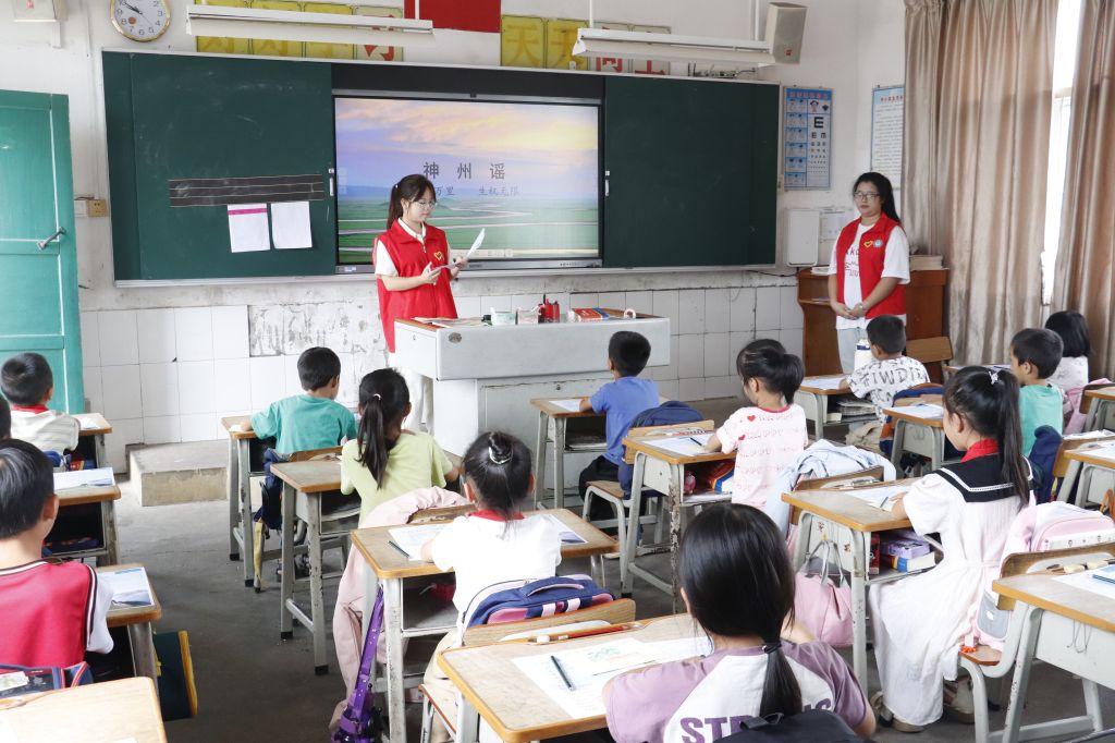 活动中,我支部成员指导积极分子一起将诗歌朗诵、规范字书写的课程带进小学课堂,同时也将党史学习融入课程,使小学生们在声声朗诵和笔笔书写中了解党的光辉历程。