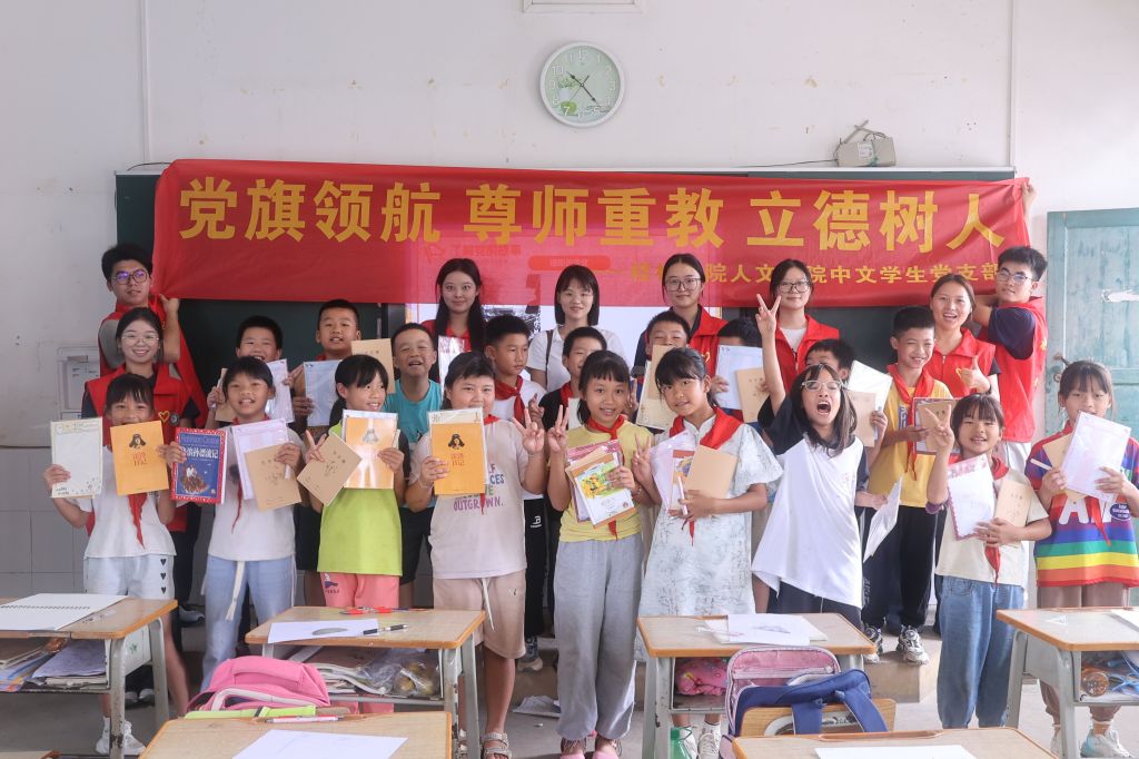 为大力弘扬教育家精神,团结凝聚广大师生以更加奋发有为的精神状态投身教育强国教育实践,9月27日上午,人文学院中文学生党支部党员和积极分子赴桂林市大埠中心校联合教学点联合小学开展“党旗领航 尊师重教 立德树人”主题党日活动。