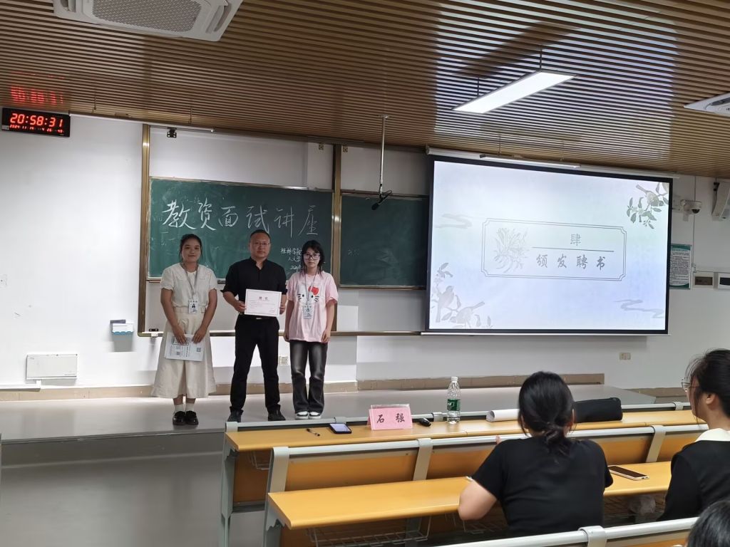 讲座后,人文学院为石强老师颁发了“中学名师进高校”系列讲座专家聘书。