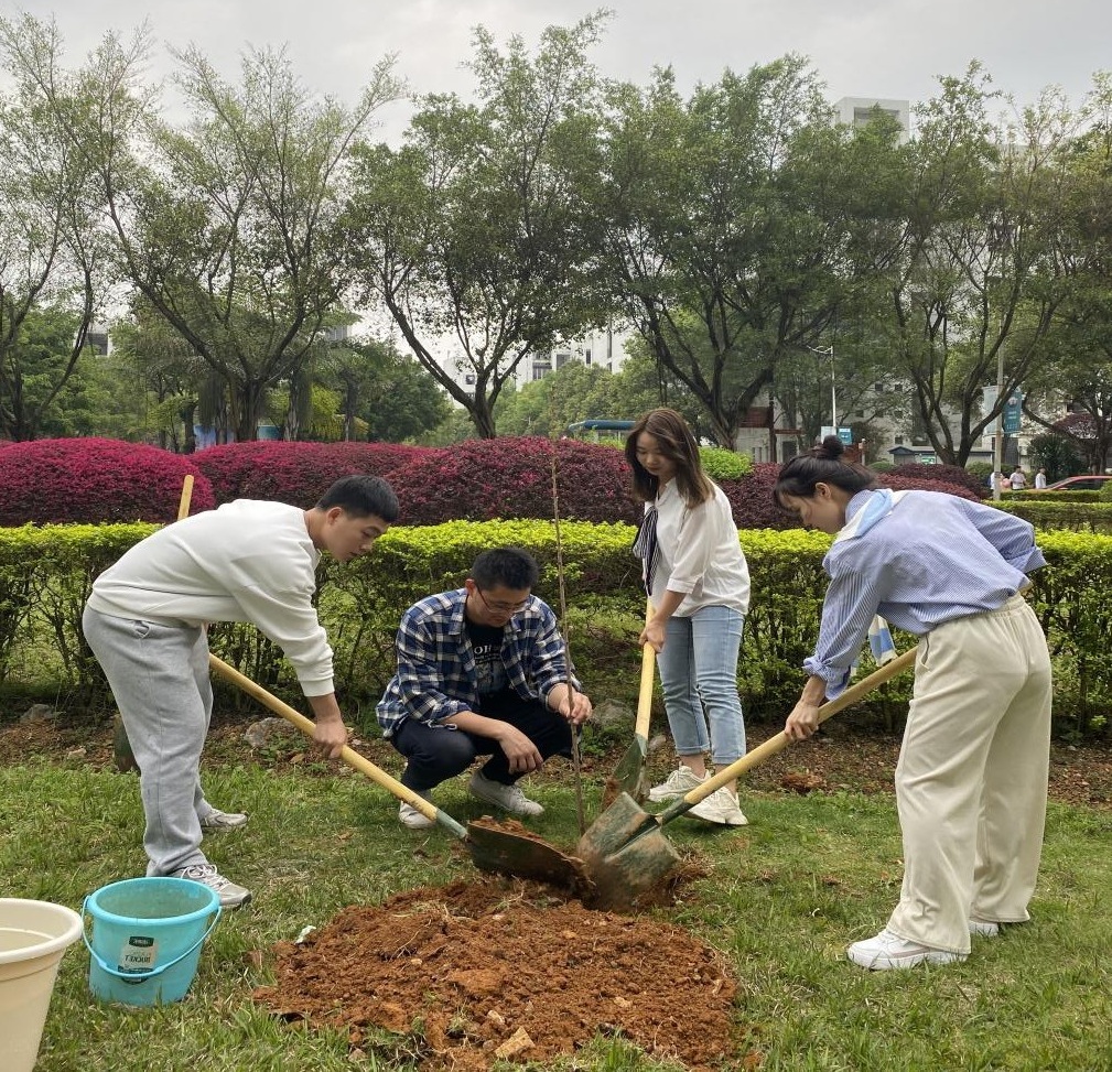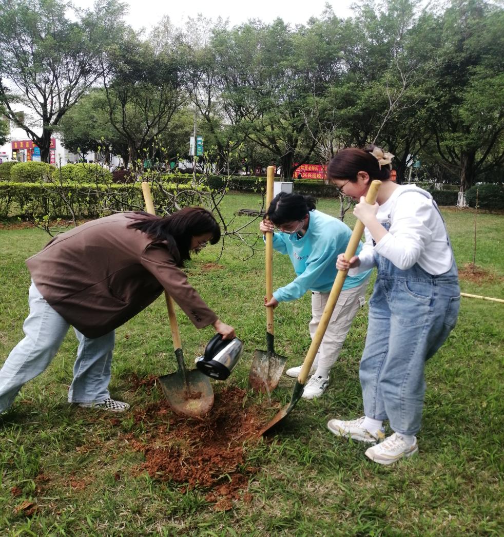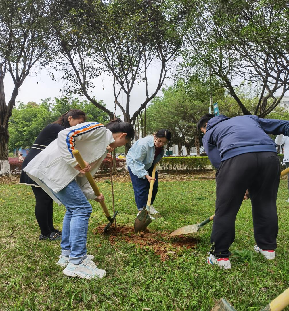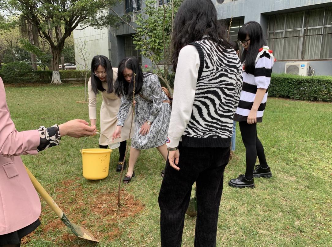 在植树现场,党员们热情高涨,精神抖擞,大家明确分工、相互协作、密切配合,有人穿梭往来搬运树苗,有人挥动铁锹挖坑填土,有人提水浇灌树苗……将一颗颗充满生机与希望的樱花树苗植入地里,身体力行为建设美丽中国,美丽校园尽一份责、出一份力。