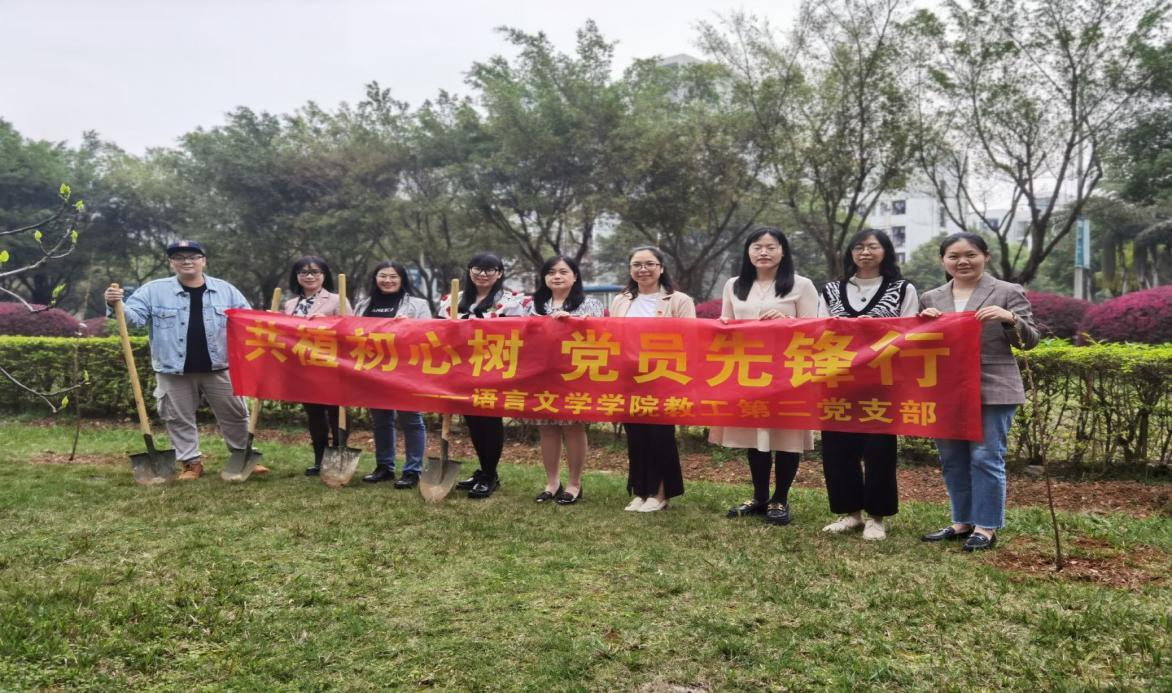 春暖花开之际,正是植树造林的大好时节。为认真贯彻落实党的十九大“建设美丽中国”和习近平新时代中国特色社会主义思想关于坚持人与自然和谐共生的战略布局。3月16日,语言文学学院教工第二党支部,学生第二党支部,考研学生党支部共建开展“共植初心树 党员先锋行”主题党日活动。