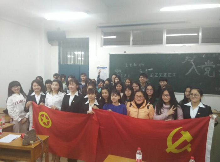 为加快党员队伍建设,树立优秀团员榜样,3月29日晚7:30外语系2014级英语第三团支部在1206教室开展了入党推优大会。出席本次大会的嘉宾有外语系团总支副书记、2014年级辅导员周俊巧老师,学生党员以及外语系团总支组织部考评干部。