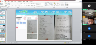 之后,第二教研室主任覃浩老师,以及张敏老师进行了《大学外语II(英语)》教学设计分享,分别就教学环节,师生、生生互动,教学平台使用,教学资料准备与补充,学生作业批改等,进行了同屏展示。覃浩老师提出,线上学习要让学生紧张,教师要舍得在精力、设备上投入,以更好地对接线上教学。