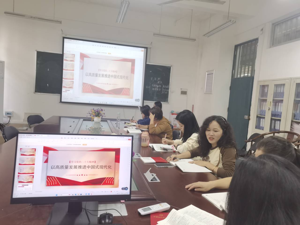 赵睿以《学习党的二十大精神---高质量发展推进中国式现代化》为题,围绕创新驱动,市场经济,共同富裕以及绿色低碳四个方面,重点解读高质量发展的构成体系与主要内容,带领支部成员共同学习党的二十大精神。