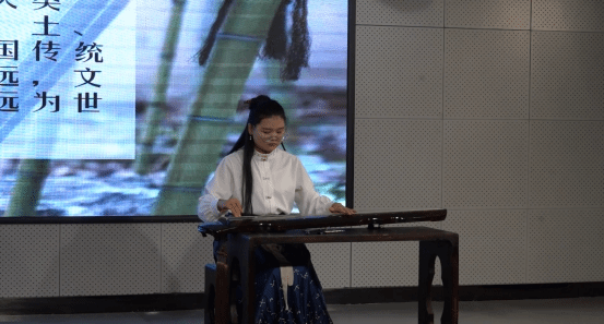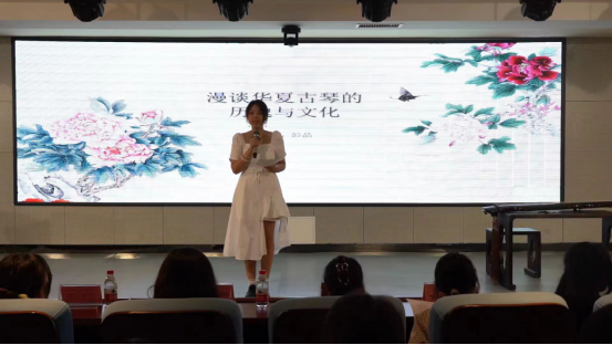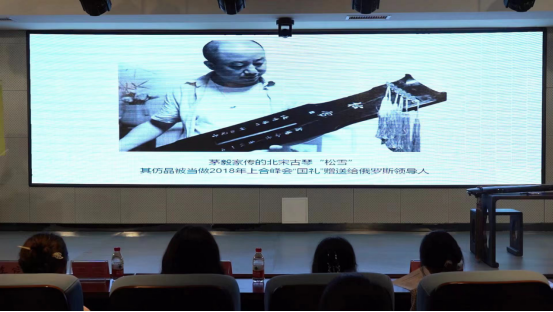 本次讲座分为五个部分:古琴初印象、国之礼器、古琴介绍、古琴历史古琴发展历程一览展开。她从古琴的历史、造型着手,生动形象地讲述了古琴的文化内涵,简单介绍了古琴记谱方式等知识,讲座中,古琴老师们弹奏了《高山流水》、《酒狂》、《阳光三叠》三首曲子,行云流水般的琴声,仿佛将人置身于一场关乎音乐的修行中,令人心醉神驰。讲座过程中,既有知识讲解,又穿插代表性古琴的表演视频,还有互动交流和答疑解惑。整场活动下来,同学们有很大收获,了解到了古琴的组织运行机制、艺术表演形式与表演内容,具有非常明显的历史认识价值、文化认同价值和艺术欣赏价值。