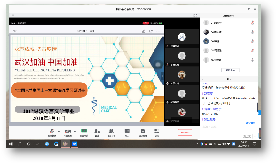观看本次视频学习后,同学们感触颇深,于2020年3月11日,学生代表就这堂思政大课展开了一次线上讨论会。本次讨论会由辅导员李晓蕾老师组织,四个班班长集体实施,白帅同学主持。