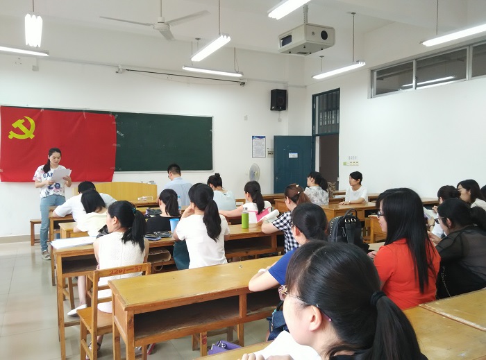 外语系教工党支部于6月3日下午在2201教室召开党员发展大会,系党总支书记、总支委员及全体教工党员出席会议,本次会议由教工党支部书记阳绮兰同志主持。