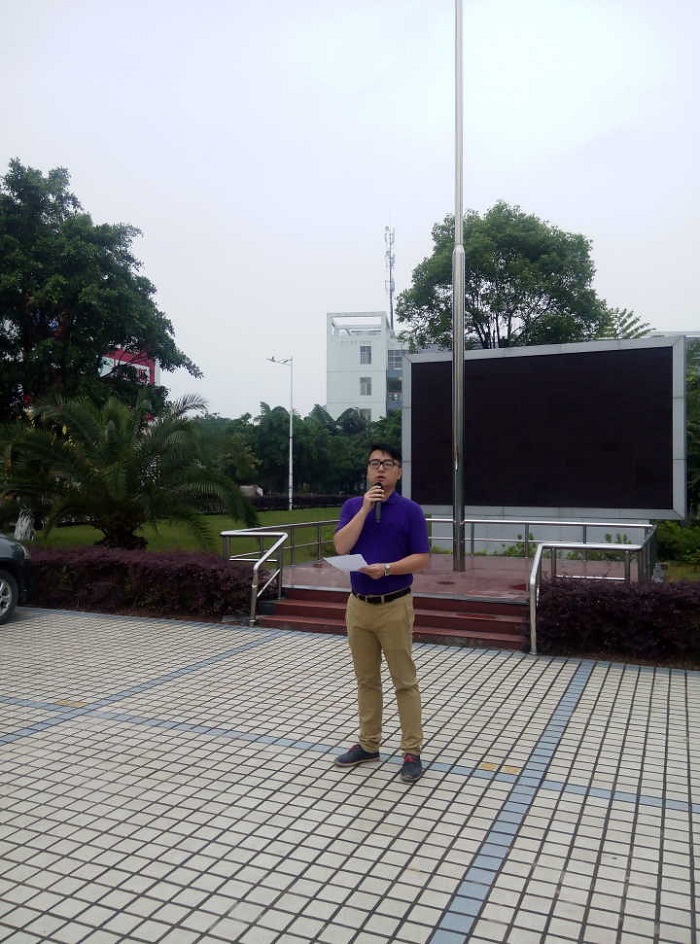 4月27日早晨,我系全体学生于学校食堂小广场举行了升旗仪式,参加此次升旗仪式的还有外语系党政领导及全体学工队伍。