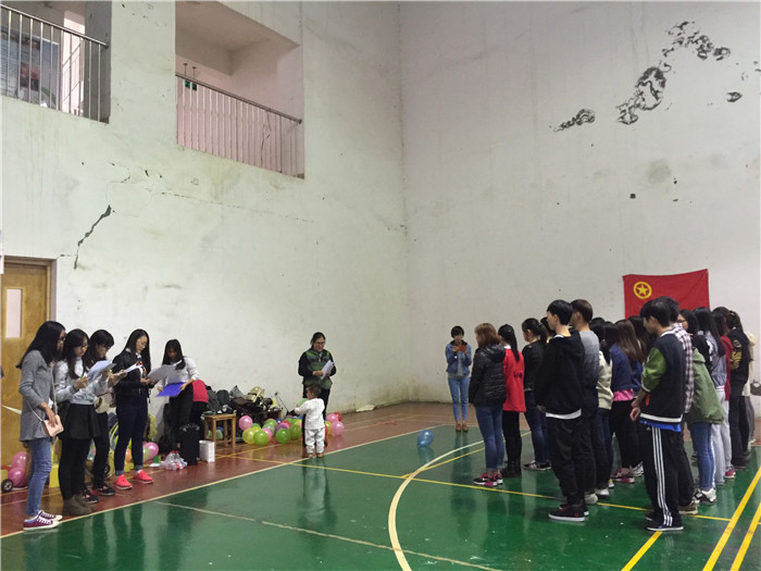 2015年11月3日下午我系2014级英语第三团支部于体育馆开展以“坚持三走,赢在未来”为主题的团日活动。此次结合商务英语专业特点,旨在让同学们通过团体竞赛,“走出宿舍,走下网络,走向操场”,以强健的体魄和良好的心智迎接未来的挑战。