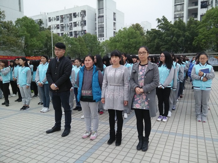 在全体师生的注目下,英姿飒爽的国防生们护送鲜艳的五星红旗入场,伴随着庄严的中华人民共和国国歌,五星红旗冉冉升起,迎风飘扬,在场的每一个人向国旗行注目礼,进行宣誓,身怀对祖国的无限热爱和崇高敬意。