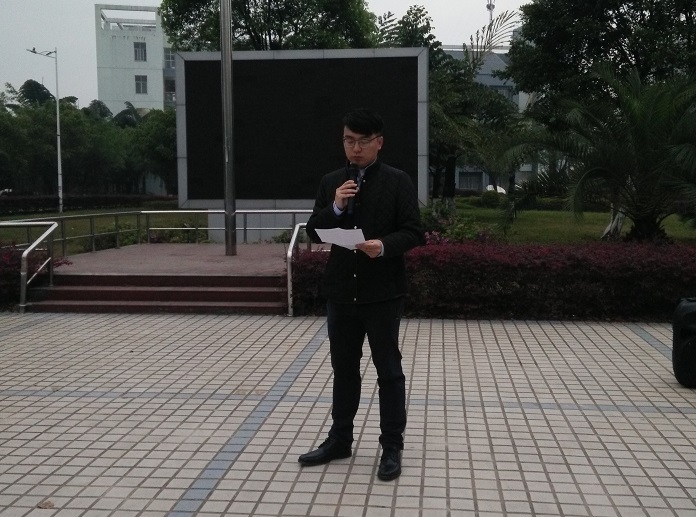 宣誓结束后,我系2014级优秀学生代表庞程程同学在全体学生进行发言,讲述了自己对雷锋月的体会与感受,并号召全体学生积极发扬雷锋精神。随后,外语系系党总支书记陈俊杰老师为本次升旗仪式发表了以“向雷锋同志学习,我们在行动”为主题的讲话。五十年来,雷锋精神已成为中华人民精神的一部分,它作为中华民族传统美德的一种积淀,将会一直流传下去。新时代的我们,仍应该继续怀着一颗诚挚而乐于奉献的心,将雷锋精神发扬光大,发挥专业特长,真诚服务社会,使之成为一种真正的成长实践。