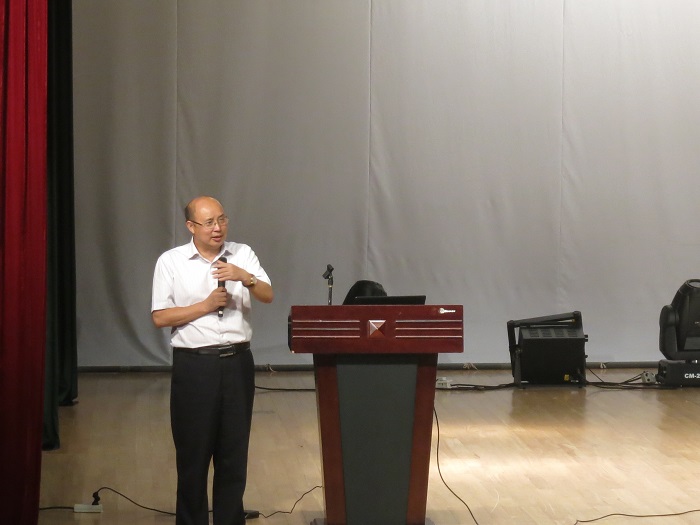 蔡校长也在会上为全体新生致辞。他表示,在全球化的今天,掌握一门外语是十分必要的,外语系拥有雄厚的教学资源和优秀的师资条件,希望同学们秉承“向学、向善、自立、自强”的校训,勇于创新,志存高远,努力实现外语梦、漓院梦!努力使自己成为应用型、国际化的外语人才。