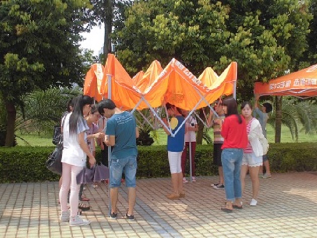 同学们在搭建帐篷