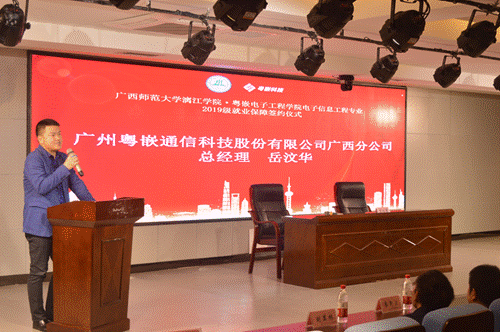 理工学院领导班子以及粤嵌广西分公司经理岳汶华、粤嵌渠道总监肖义等出席本次就业保障协议签约仪式。